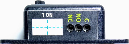 Temporizator cu intarziere la oprire, cu durata de intarziere maxima programabila prin cronometare, temporizare reglabila in intervalul 0%-100% din timpul programat, iesire pe releu de 5A, contacte normal inchis (NC), normal deschis (NO) si comun (C).